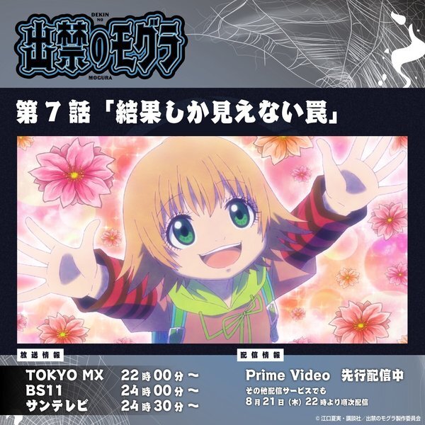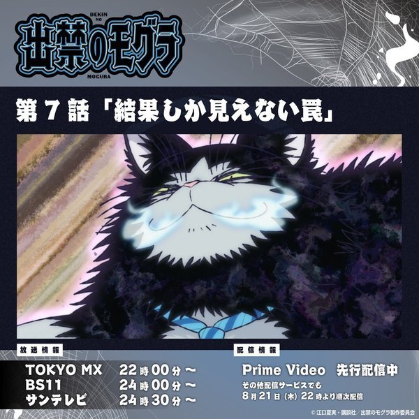 @dekinnomogura『出禁のモグラ』TVアニメ公式|好評放送&配信中 2025-08-18 22:00:01x=x=x=x=x=x=x 第7話「結果しか見えない罠」 x=x=x=x=x=x=x TOKYO MXにて放送開始‼️ 📺以下でも今晩放送します BS11:24時00分〜 サンテレビ:24時30分〜