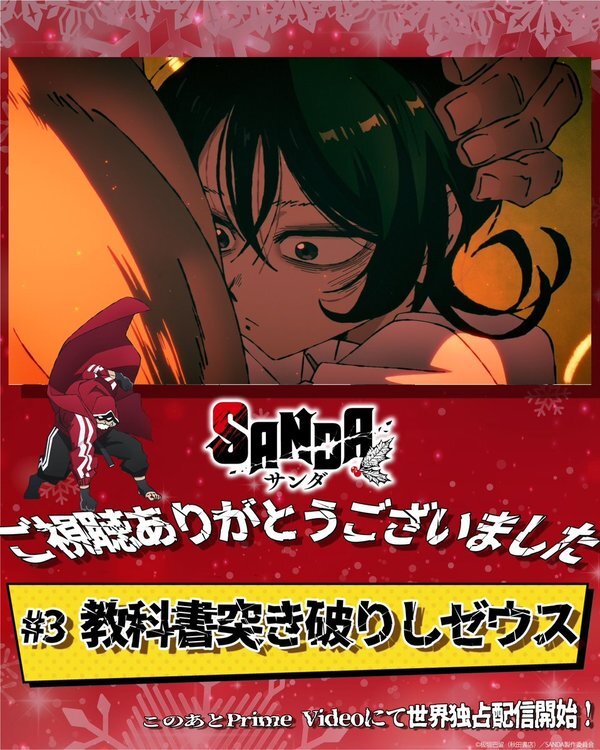 @sanda_animeTVアニメ『SANDA』公式 2025-10-25 02:23:00✦•················•✦•··················•✦ SANDA #4 ご視聴ありがとうございました ✦•················•✦•··················•✦ #4【教科書突き破りしゼウス】 26:30からBS-TBSでの放送も!📺 を付けた感想もお待ちしています! 次回もお楽しみに🤜🏻🎅🏻🤛🏻