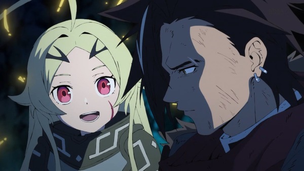 @fa_tachibana 2026-01-22 22:59:11「#勇者刑に処す 懲罰勇者9004隊刑務記録」#03-聖印について解説しつつ量産品の強化もしてくれる陛下。鉱夫達を鼓舞する様は狂人ながらマジ王の器。窮地にテオリッタも駆けつけ。魔王現象の主の”声”が効かないタツヤは既に壊れているからか。命張ったの活躍の「大した王様」、今回は報われた勇者。