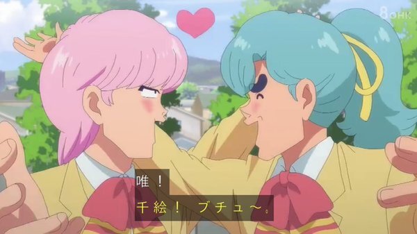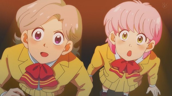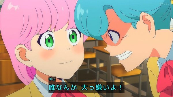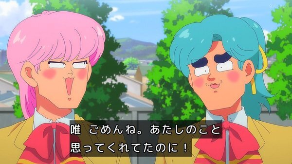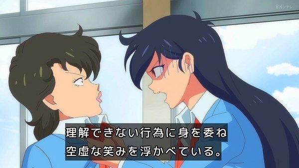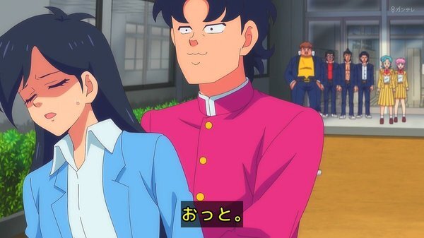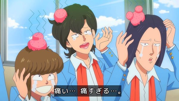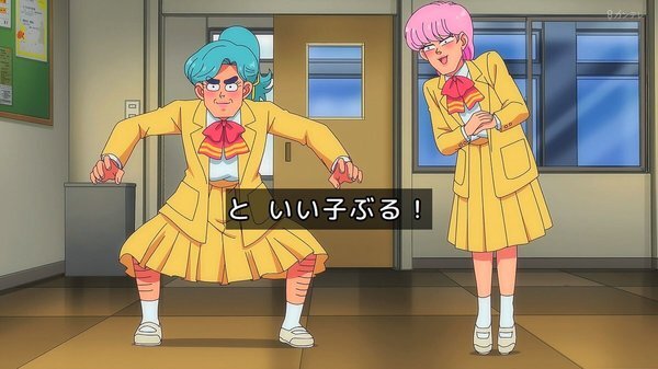 @fa_tachibana 2026-01-23 23:59:06「ハイスクール!奇面組」#03-唯のおせっかいに怒り飛び出す千絵、今どき人型に壁をぶち抜くやつw 親切心の逆効果。零と豪で勝手に再現VTR、をニコ動にw/全力でキャッキャウフフw唯と千絵に天邪鬼の天野邪子。音楽教師・葉反度礼美(CV:種﨑敦美)登場。王道の不良と捨て猫w