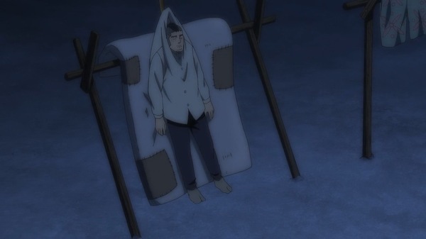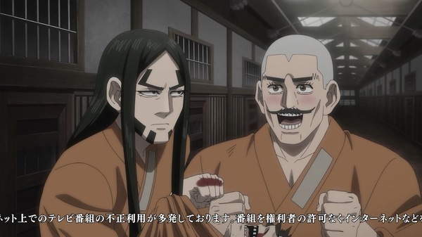 @umimuro 2026-01-26 23:29:01金カム見た。月島の葛藤や房太郎の過去と死、杉本と菊田特務曹長の再会などシリアス寄りだったが、それでも門倉部長のラッキー就寝と二階堂のお箸ビームみたいなギャグやっちゃうから本作は気が抜けない。相変わらずの情報量、戦闘シーンもいつも以上に激熱だ