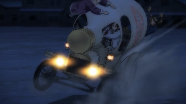 @sharmchen 2026-01-26 23:23:11札幌ビールの車、明治にああいう広告看板みたいな車があったのか。 ブルースブラザーズみたいに建物突っ切って通り抜けた!!! 房太郎…白石を助けてくれたのか…。