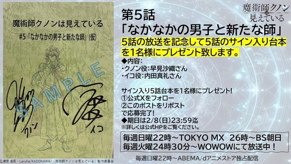 @animekunonTVアニメ「魔術師クノンは見えている」公式 2026-02-01 22:27:00/ 第5話放送記念サイン入り5話台本プレゼント📦 \ 第5話の放送を記念して さん、 さんサイン入り5話台本を1⃣名様にプレゼント❣ 応募方法:本アカウントをフォロー&当ポストをリポストで完了💧 ⏰締切:2/8(日)23:59迄 詳細は👇