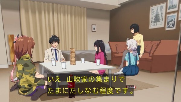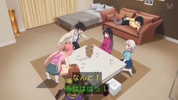 @shintama_night 2026-02-10 23:39:456話 体育祭終わりの打ち上げ。ヒロイン4人の私服が良かったです。アニメオリジナルのジェンガの下り。アリスが寝てる間にお城を作り上げた4人の友情パワーはすごすぎた。 あとケーキ4個+1個食わされた山吹は大丈夫なんでしょうか。