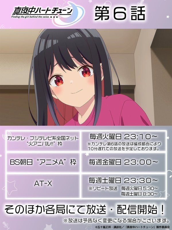 @anime_mayochuTVアニメ『真夜中ハートチューン』公式 2026-02-10 23:40:00⊹⁺‧┈┈┈‧⁺ ⊹˚. TVアニメ『#真夜中ハートチューン』 第6話 ご視聴ありがとうございました❣ .˚⊹⁺‧┈┈┈┈┈‧⁺ ⊹˚ 【第6話 サブタイトル】 「寧々は見た」 「A PIECE OF CAKE(朝飯前さ)」 「今の言葉、ずっと大切にするね」 プレゼントキャンペーン実施中🎁