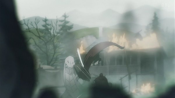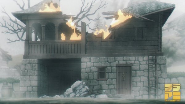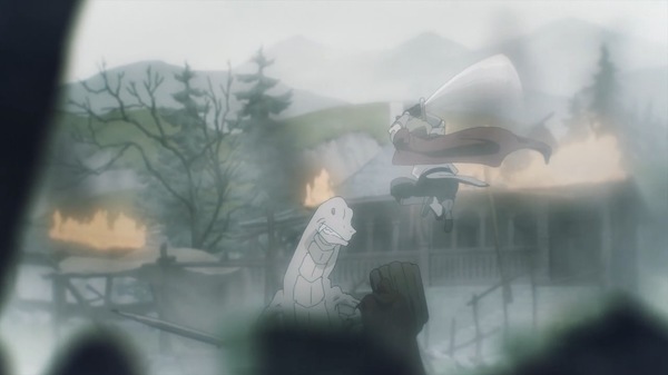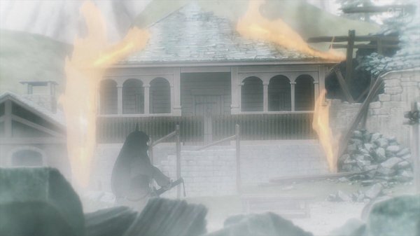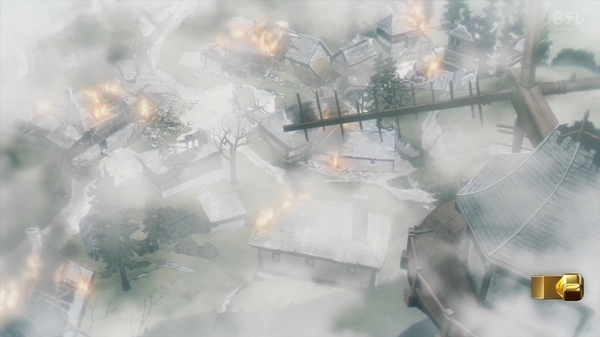 冒頭、伝書鳩が飛び村は火を放たれる