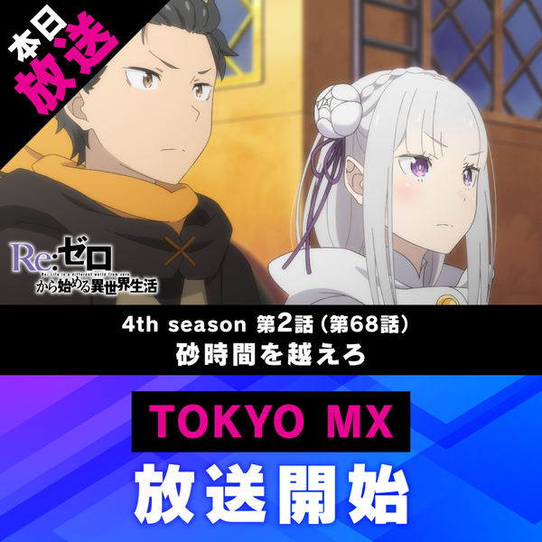 @Rezero_official『Re:ゼロから始める異世界生活』公式 2026-04-15 23:00:01◪放送開始◪ TVアニメ「Re:ゼロから始める異世界生活」 TOKYO MXにて4th season 第2話(第68話) 「砂時間を越えろ」が放送開始✨ 感想は是非 をつけて ご投稿ください。