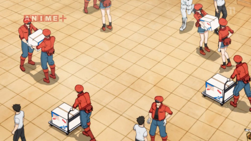 「はたらく細胞」特別編「風邪症候群」-細胞分裂の丁寧な擬人化の仕方w あやしげ感染細胞と友達になり遊び回るモブ細胞、弄ばれる白血球w 家に上げたら本性現すよホラー映像ライノウィルス。マクロファージ羽子板武器でも相変わらずの強さ。ツンデレキラーTw 赤血球出番少なっ。