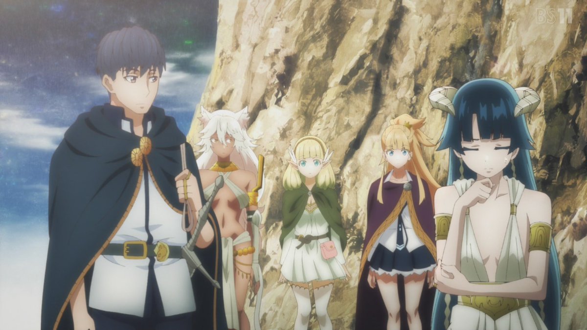 再来週Aパートでバトル、Bパート頭で敵撃退して一旦戦い終了→大賢者やマルスと再会してわいわい→夜に佐藤が寝室扉開けると→EDに続く→Cパート 朝、5人肌ツヤ、佐藤げっそり