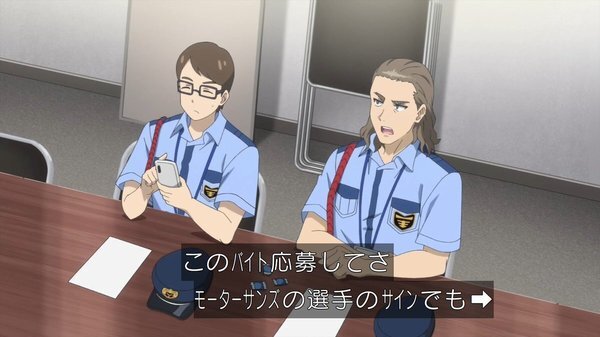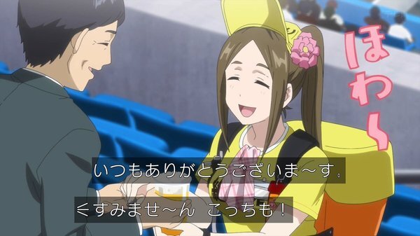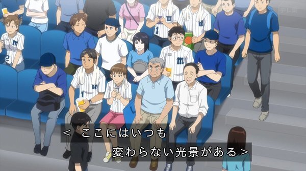 @fa_tachibana 2025-04-02 00:29:53「ボールパークでつかまえて」#01-原作は「モーニング」連載、野球アニメではなく球場アニメ、3本立て構成。モデルはマリンスタジアムかナレでも千葉と。球場に癒しを求める社畜のコウタロウに絡む新人ビール売り子ルリコ、からの後半は警備員のいい話でツカミは良い感じ。