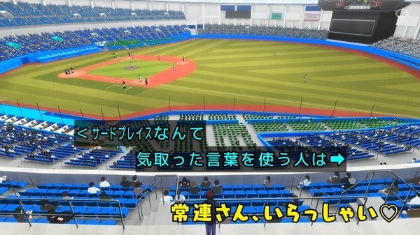 外見やスコアボートの形状、ユニフォームからして……そー言えばここって海風が凄いし、昨年はパワプロとコラボしているしなぁ。各球団の広報がこの作品を逃す訳もないしなぁ……交流戦もあるしな(汗