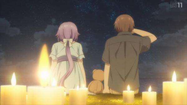 今週の一言感想:紬ちゃんとの最後の1週間を1年分のイベントで楽しんでゆくのはいいアイデアでしたね!そして最後は感動の誕生日のサプライズ。明るい笑顔から挿入歌に至るまで紬ちゃんのすべてが最後までかわいかったです。次回はまた夏休み冒頭に戻るのかな?紬ちゃんは消えたまま?