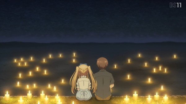 @fa_tachibana 2025-06-09 23:59:06「Summer Pockets」#10-夏休み最後の一週間にハロウィンにバレンタインにクリスマスも、いかにも鍵作品な挿入歌。夏休み最後の日=紬の誕生日に皆が作ったキャンドルロード。この夏を歌っているのね「むぎゅぎゅぎゅぎゅ♪」はともかくw 彼女は夏休みそのもの、か紬ルート完。