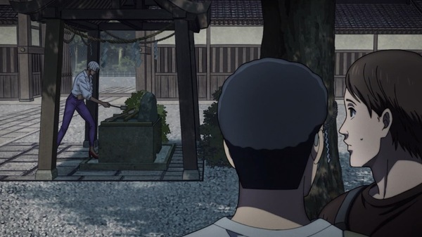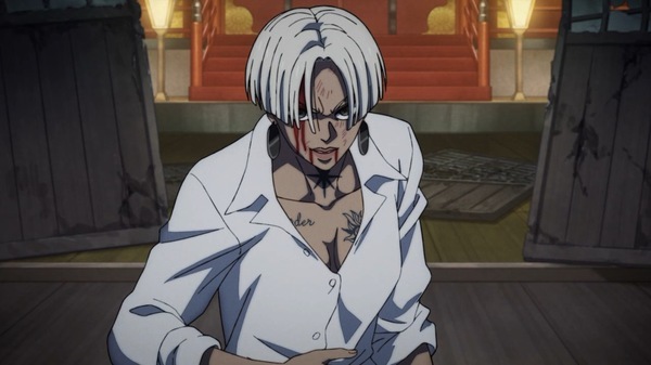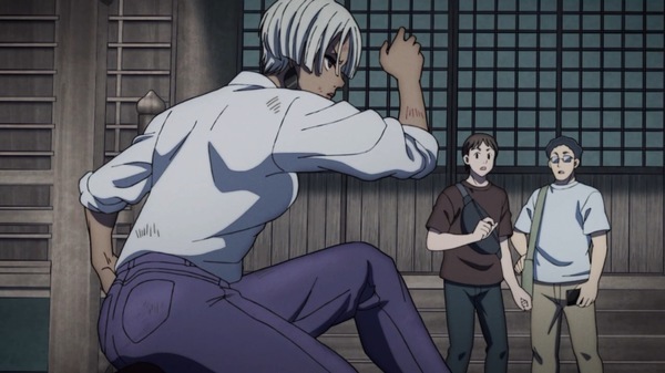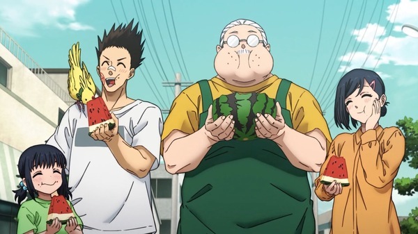 @fa_tachibana 2025-07-22 00:27:00「SAKAMOTO DAYS」#13-ウータンがシンの覚醒した能力を解説。”マフィア上戸”の酔拳ルー、声色まで変わってw 逃げたソウは豹が始末するがタクシー災難w 事後処理部隊フローター登場。神社で大佛に襲いかかる死刑囚ダンプだが丸鋸はエグい。アパートにバラされるも死なない鹿島。