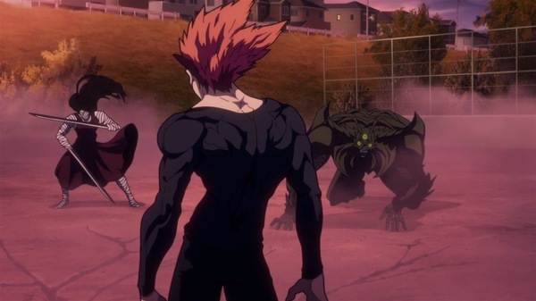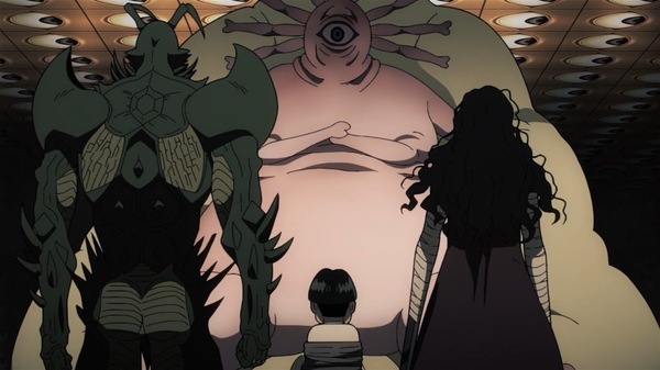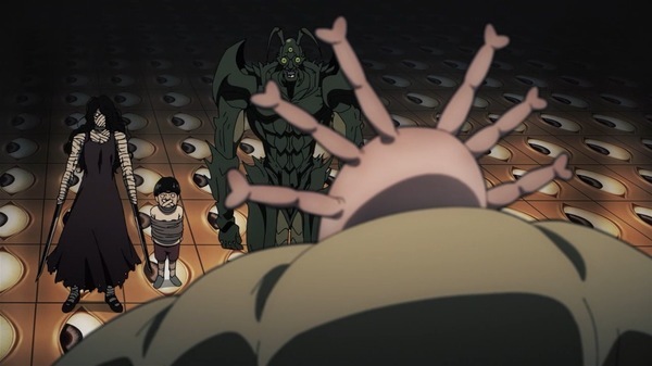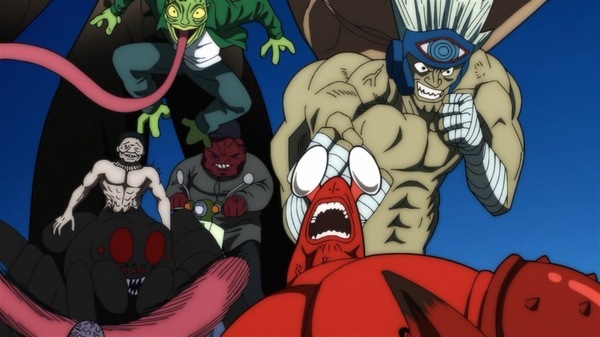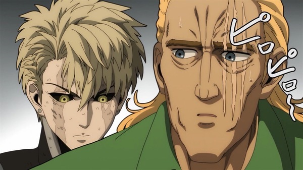 @fa_tachibana 2025-10-27 00:12:58「ワンパンマン」#27-ジーナス博士が語る生物の限界を越えたサイタマという存在。タコ焼き屋の理由w キリサキングと蟲神を相手にするガロウだが後から現れたヘドロクラゲがタレオを人質に取られ。クセーノ博士をお迎えの保護者扱いするが高級肉で釣れるサイタマw 不憫なタレオ君。