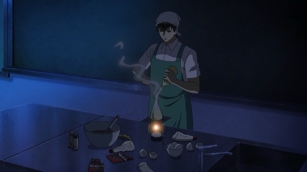 アニメ特有の出入り自由な夜の学校。