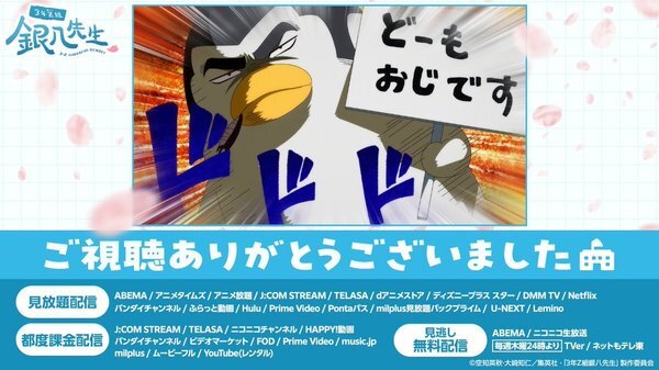 @gintamamovieアニメ銀魂&3年Z組銀八先生 2025-11-18 00:34:00▷ご視聴ありがとうございました🍃 TVアニメ『3年Z組銀八先生』第7講 ご視聴いただきありがとうございました🏫 第7講の配信は25:00〜スタート! 次回・第8講は 11/24(月) 24:30〜 テレ東系列ほかにて放送📺