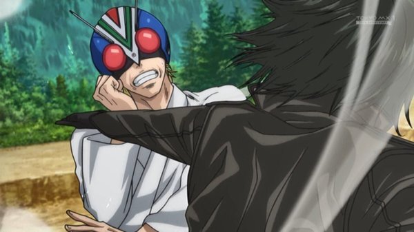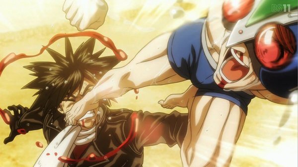 @simafuku 2025-11-30 00:58:39東島丹三郎は仮面ライダーになりたい9話視聴。東島のユカリスへの豪快な男女平等パンチに笑ったけど、すぐさま2人の世界に浸る三葉とユカリスも面白すぎる。そりゃ、一葉も2人にツッコミパンチを入れますわ。そして只のコスプレ男達の戦いの筈なのに普通に熱くてカッコいいのは何なの