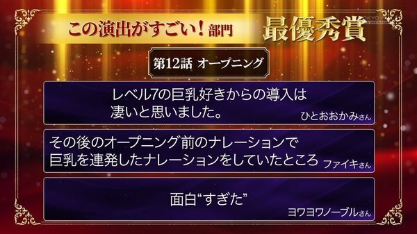 @ulotti 2025-12-22 23:57:11『嘆きの亡霊は引退したい』特別番組「嘆きデミー賞」 小野賢章さん、久保田未夢さん、たかたまさひろ監督3人で振り返る名シーン集! 第1期の懐かしいものから第2期の新しいものまで、 本作のこだわりを改めて感じる凄く良い特番だったなあ OP・ED・次回予告まで一体の素晴らしい作品だ~
