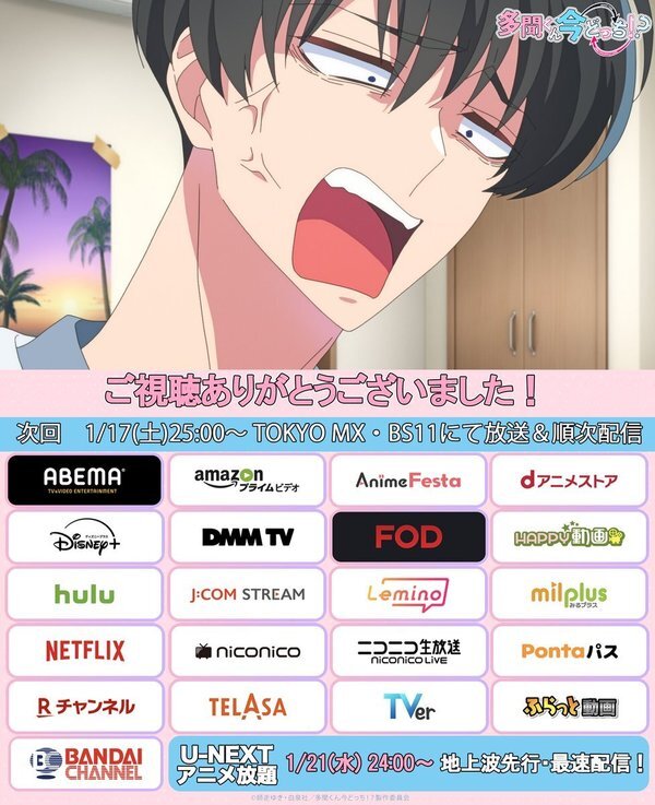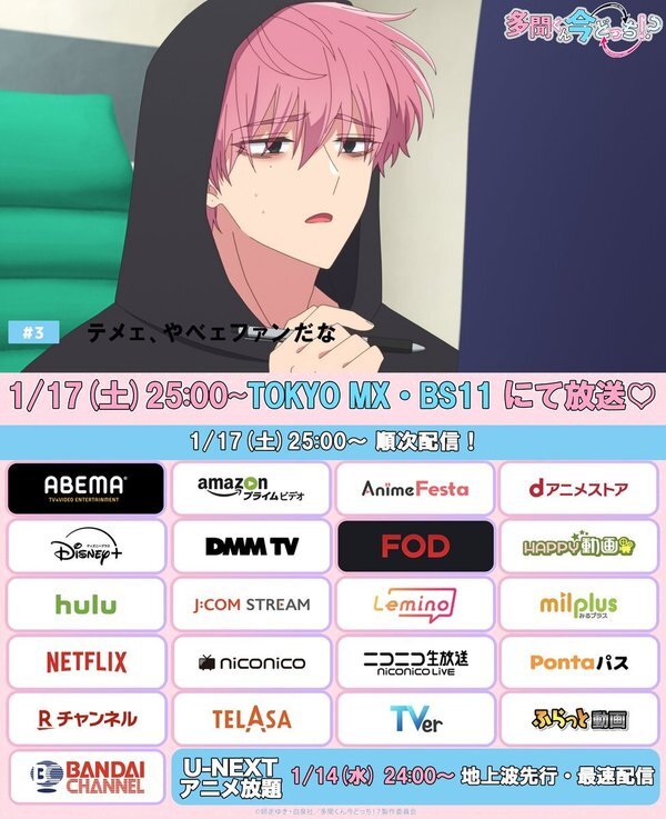 @Tamon_animeTVアニメ「多聞くん今どっち!?」公式 2026-01-18 01:00:01⋰ 放送開始❣️ ⋱ SWITCH.3 テメェ、やべェファンだな 感想コメントは 「#多聞くん今どっち」 のタグをつけてね✨