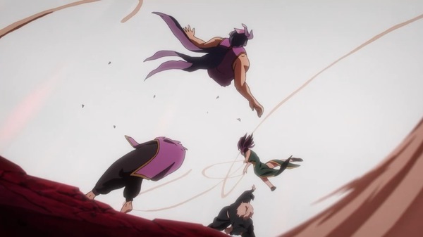 『地獄楽』第19話「相克と相生」 蘭 VS. 画眉丸&杠! 画眉丸の氣とは相克の関係で絶望的な状況かと思ったけれど、 これまで培ってきた全てをぶつけての戦闘が異能力バトルモノの醍醐味を感じたなあ しかし鬼尸解した蘭の強さが異次元過ぎて、 この状況を打破する術が思い浮かばない…