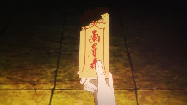 地獄楽第19話(2期6話)にて、「筆文字デザイン」で参加させて頂きました。「蓮の書いた霊符の文字」を担当しております。貴重な機会頂きありがとうございます。 〈←ハリコミ後〉〈元素材→〉
