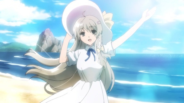 白い帽子に白いワンピースのロングヘア美少女