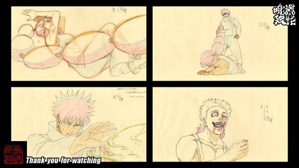 @yunworks_ユン 2026-03-13 00:54:38『呪術廻戦』第3期 第57話LO、原画、作画監督として参加しました! 演出さんと総作画監督さんから多くのことを学べる、とても良い機会でした! 素敵な映像なので、ぜひ皆さんご覧ください!!