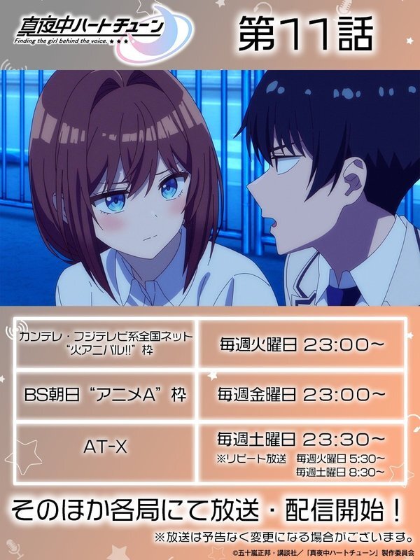 @anime_mayochuTVアニメ『真夜中ハートチューン』公式 2026-03-17 23:30:00⊹⁺‧┈┈┈‧⁺ ⊹˚. TVアニメ『#真夜中ハートチューン』 第11話 ご視聴ありがとうございました❣ .˚⊹⁺‧┈┈┈┈┈‧⁺ ⊹˚ 【第11話 サブタイトル】 「少し目を離した隙に」 「SECRET TRACK」 「celestial」 3/24(火)23:00~ついに最終回❣ プレゼントキャンペーン実施中🎁