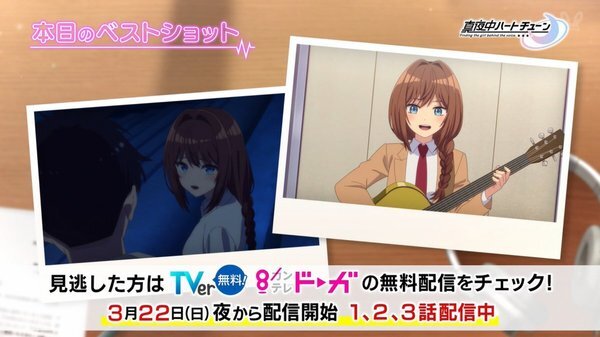 @anime_mayochuTVアニメ『真夜中ハートチューン』公式 2026-03-17 23:00:00⊹⁺‧┈┈┈‧⁺ ⊹˚. TVアニメ『#真夜中ハートチューン』 第11話 放送開始📻️✨️ .˚⊹⁺‧┈┈┈┈┈‧⁺ ⊹˚ アニメ 第11話 カンテレにて 放送開始📢📢 屋上でのオリ曲ライブを終え歌う楽しさを思い出した六花だが、 まだまだ不安が残る様子…🎸