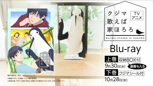 @ulotti 2026-04-09 23:57:06『クジマ歌えば家ほろろ』第1話「初めてのブリンは塊になる」 家にクジマという謎の生物がやってくるお話がスタート! 一番最初は本当に怖かったけど、 いい意味で常識を打ち破るキャラクター性が家族の不和を解消する良い存在になりそうだなあ あまりにも全てが個性的な作品!