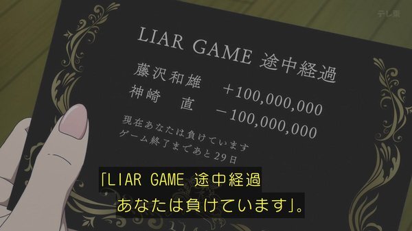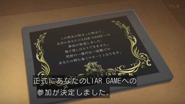 @liargame_animeTVアニメ『LIAR GAME -ライアーゲーム-』公式 2026-04-07 00:28:01TVアニメ『LIAR GAME』第1話「伝説の詐欺師」 テレ東系列にてご視聴ありがとうございました✉️ 各配信サービスでも24:30〜順次配信開始! 引き続きお楽しみください🎭